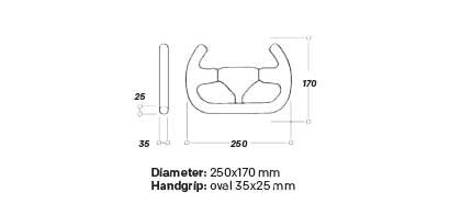 - Impugnatura: Ovale 35 x 25 mm.